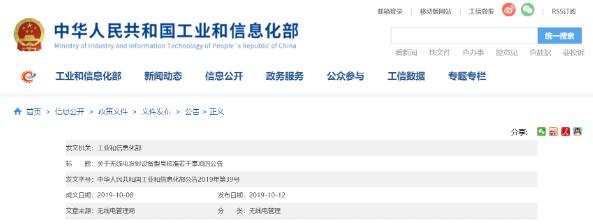 10月12日,工信部發(fā)布關(guān)于無線電發(fā)射設(shè)備型號(hào)核準(zhǔn)若干事項(xiàng)的公告,對(duì)無線電發(fā)射設(shè)備型號(hào)核準(zhǔn)事項(xiàng)作了進(jìn)一步優(yōu)化。