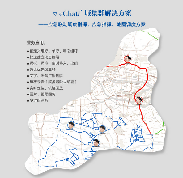 BF-CM336特有的易洽eChat集群調度系統(tǒng),是集手機和對講機功能完美融合的新一代對講業(yè)務。可實現(xiàn)單呼、組呼、組成員優(yōu)先級、限時通話、呼叫限制、通話狀態(tài)提示、群組成員狀態(tài)顯示、跨集團呼叫等功能。為賽事活動高效率、快響應的工作需求提供了強有力的、多功能的通話后盾。同時還可以自定義集群調度用戶菜單,根據(jù)通訊需要設定群組數(shù)量、名稱;還能建立臨時通話群組,便于臨時指揮調度。滿足賽事多樣化的調度需求。