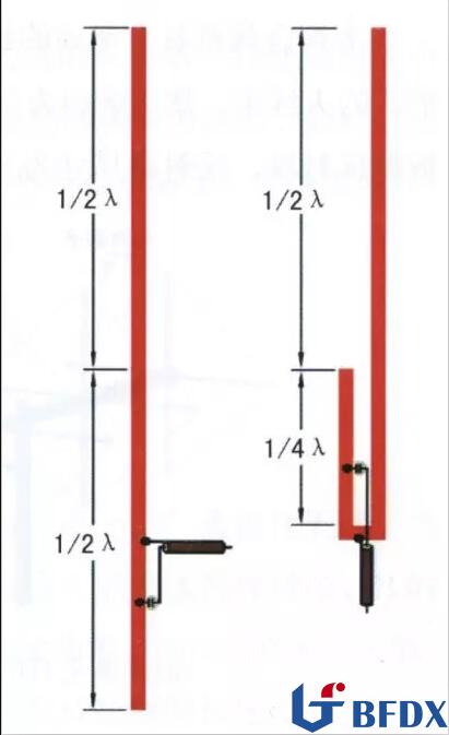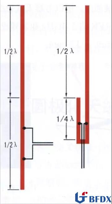 (全波長振子到平衡饋電J型天線)所以是一種很實用的HF和UHF業余頻段天線,也有業余電臺在HF的高頻段使用。當然,J型天線的輻射段也可以做成帶有移相節和2個以上半波長振子的同軸陣列天線,以求取更高的增益。