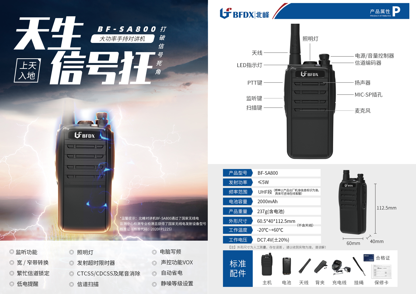 VHF: 136~174MHz UHF:400-470MHz |