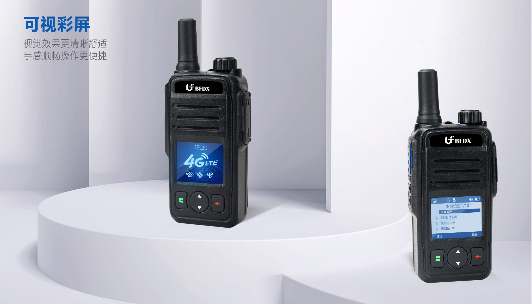 BF-CM630公網(wǎng)對講機(jī)配置1.77英寸的彩屏+4鍵式簡易鍵盤操作,可直觀讀取群組信息、在線成員數(shù)量、話權(quán)狀態(tài)、信號強度、電池電量、時間日期等信息,操作簡單一目了然。LCD彩色顯示屏配合背光可調(diào)的簡潔白底色,整體視覺效果更加清晰舒適,無論使用環(huán)境如何變化,界面信息均清晰可見。