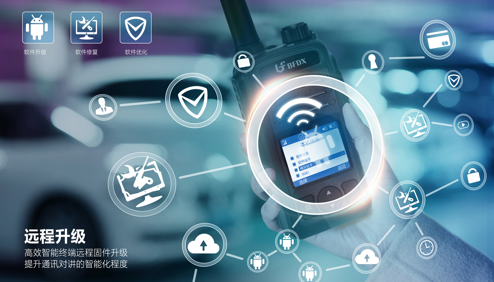 依托于(移動、聯(lián)通、電信)三大運營商網(wǎng)絡(luò),BF-CM630可實時OTA遠(yuǎn)程升級固件系統(tǒng),完成在線軟件升級、軟件修復(fù)、軟件格式優(yōu)化等一系列操作,無需連接PC端就能一鍵更新最新版本,提升通訊對講的智能化程度。