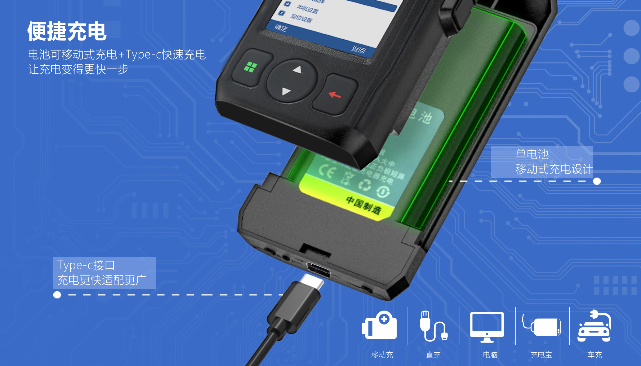 BF-CM630在人性化充電方式設(shè)計上,除了充分考慮戶外充電不便的情況,當(dāng)電量不足時用戶可直接更換備用電池繼續(xù)使用,提供了靈活可移動式的電池充電方式。同時,增加了最新的Type-C充電方式不分正反、操作便捷,支持移動電源、車載等多種充電方式,確保用戶無論何時何地整機(jī)迅速恢復(fù)到滿電狀態(tài),從而進(jìn)一步提升通信效率和待機(jī)時長,有效解決續(xù)航焦慮。