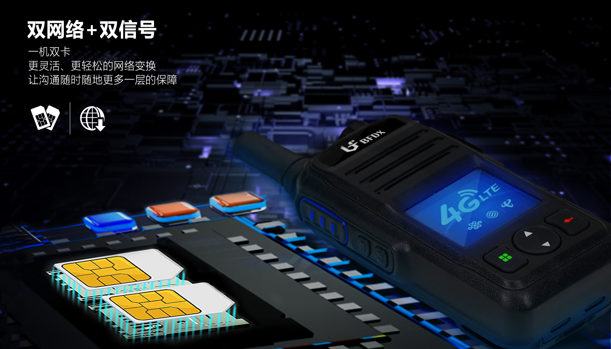 BF-CM630支持更自由的入網(wǎng)選擇模式,雙卡槽設(shè)計,一機(jī)雙卡靈活切換。方便用戶根據(jù)現(xiàn)場實際情況或信號強弱,靈活應(yīng)用不同場景、及時切換不同通信網(wǎng)絡(luò),解除當(dāng)前卡無網(wǎng)絡(luò)通信的局限性,實時提供多一層通信保障,真正做到有備無患。