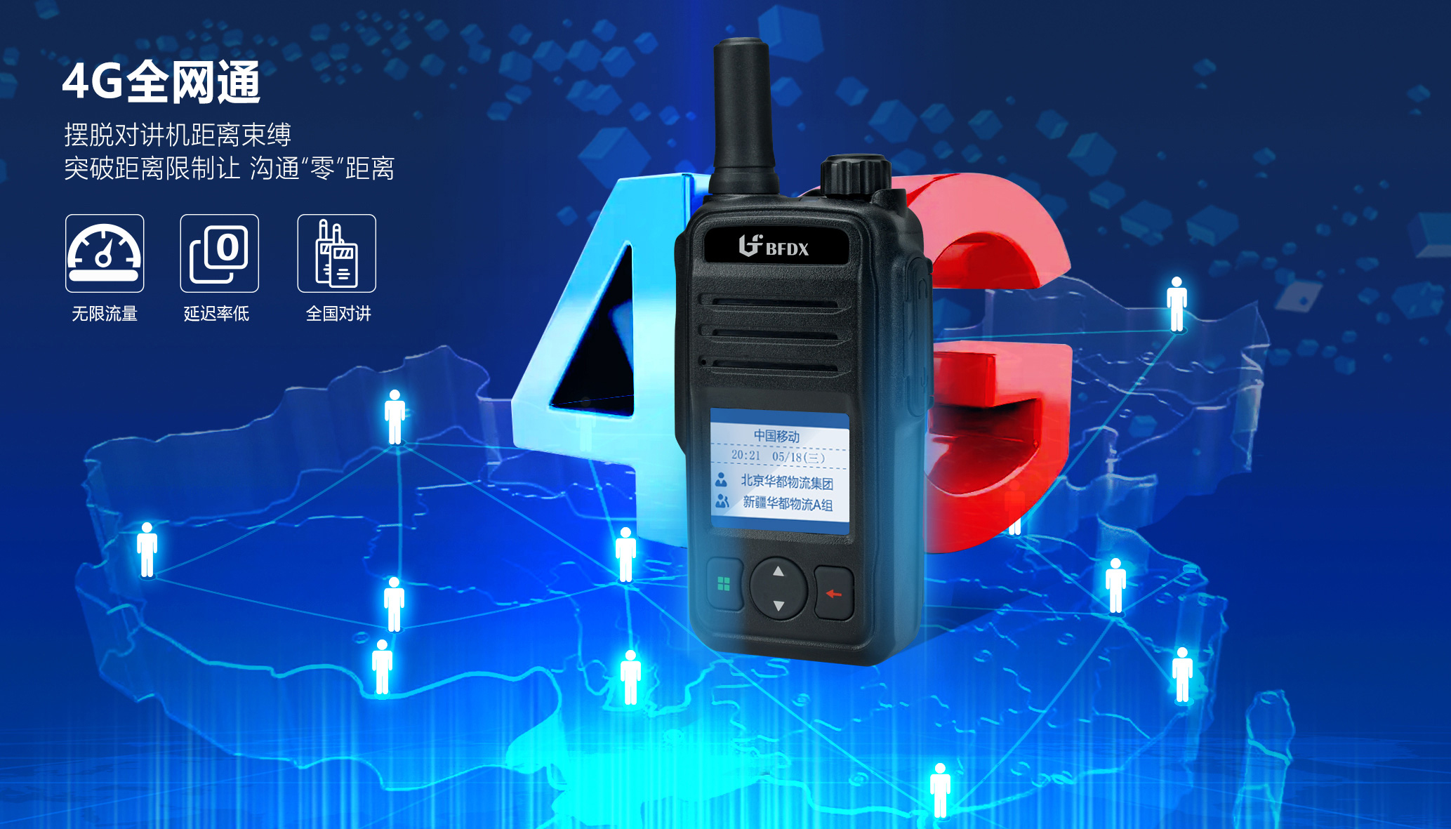 BF-CM630公網(wǎng)對講機(jī)突破傳統(tǒng)公網(wǎng)集群2G/3G限制,在4G網(wǎng)絡(luò)覆蓋的范圍內(nèi),讓用戶自由選擇最佳的運營商網(wǎng)絡(luò)(移動、聯(lián)通、電信),進(jìn)行單呼/組呼/群呼,實現(xiàn)全國5000公里范圍內(nèi)不限距離、不限流量隨時互通。注:(5000 公里通話距離: 此數(shù)據(jù)來源于中國移動官方網(wǎng)站南沙群島與新疆烏恰縣均完成 4G 網(wǎng)絡(luò)覆蓋,且兩點直線距離超過 5000 公里??蓪崿F(xiàn) 5000 公里以上的對講距離。)