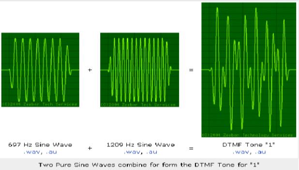 從組合原理看,其從高低頻群中任意抽出2種頻率信號組合來進行編碼,所以又稱為“雙音”;又因它采用了8種不同的單音頻信號,故稱之為“多頻”;