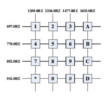 DTMF一共可組合16種字符形式,其中 10個代表數字:0~9