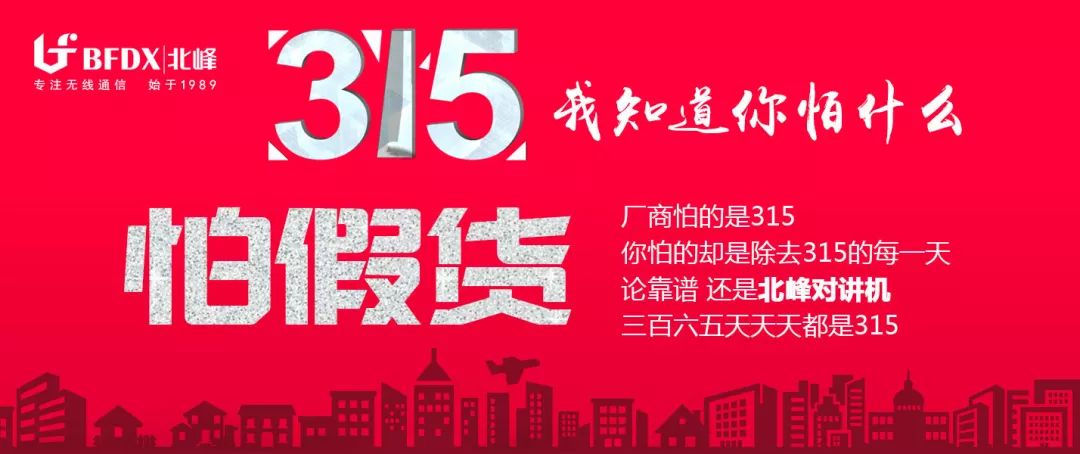 北峰作為一個擁有29年歷史的品牌,多年來堅持以創新科技為核心,為客戶提供多樣化、專業化、先進化的專業通信設備及解決方案,從行動上維護每位客戶的實質權益。北峰深知:廠商怕的是315,消費者怕的卻是除去315的每一天。
