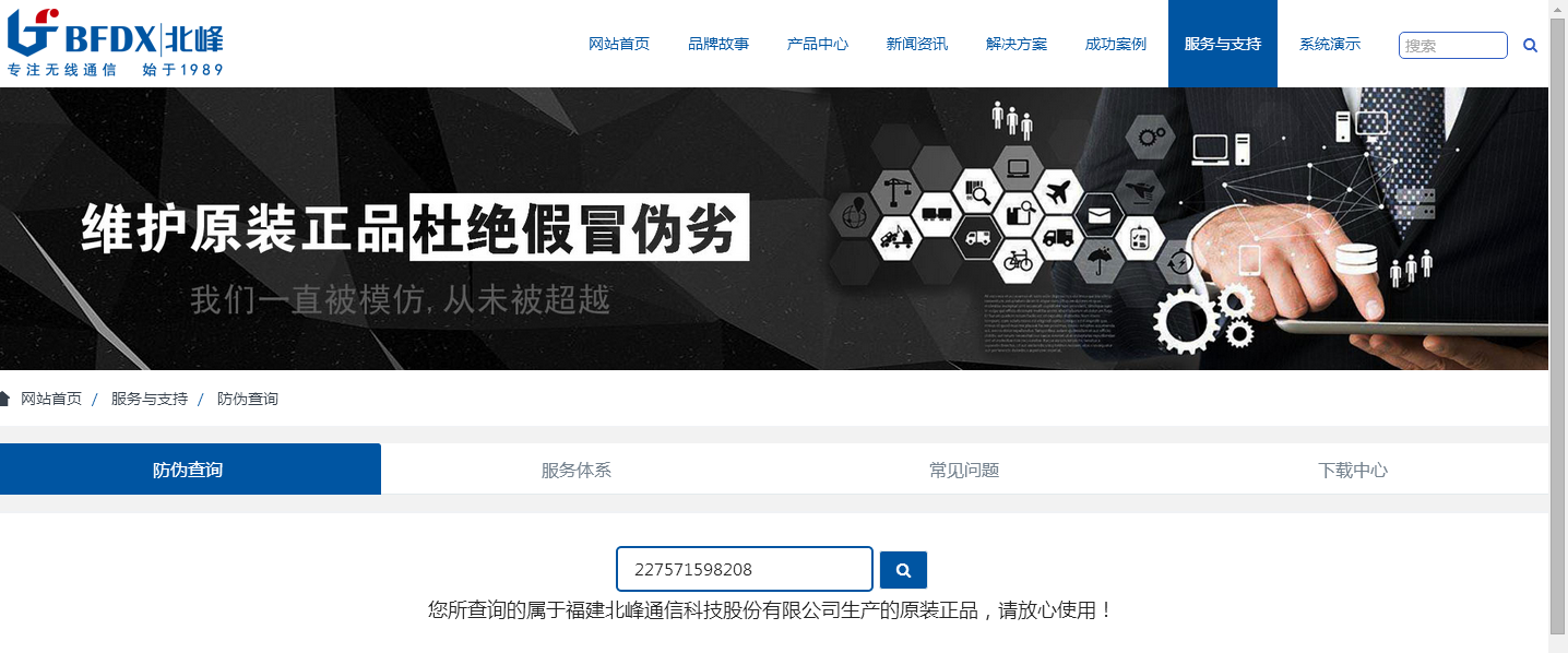 1、進行北官方網站m.idolmind.cn-找到“服務與支持”;在“服務與支持”中,找到“防偽查詢”,刮開北峰對講機上的防偽碼并輸入進去即可。