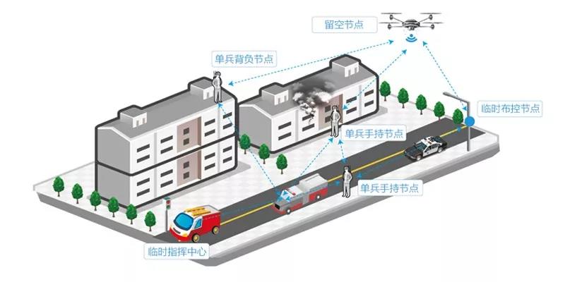 憑借上述優(yōu)勢,MESH無線自組網(wǎng)系統(tǒng)在應(yīng)急通信場合發(fā)揮重要作用。滿足大型活動安保巡邏、城市反恐維穩(wěn)指揮、搶險救援指揮調(diào)度、消防應(yīng)急通信指揮、艦船編隊岸海互通等多種復(fù)雜通信需求。